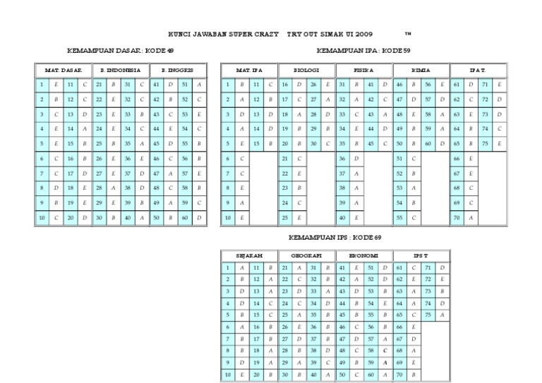Kunci Jawaban Simak Ui 2018
