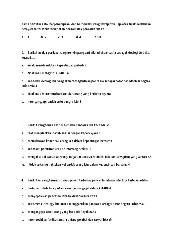 Soal latihan pengamalan sila pancasila untuk sd. Demikian pembahasan membahas Jawaban Pengamalan Sila Pertama Pancasila kelas 4 tema 4 subtema 1 pembelajaran 2. Soal Pkn Sd Tentang Pengamalan Pancasila Ala Model Kini 2019-07-10 225658 Kls 4 Kisi Kisi Utk Wali Murid Ppkn Ini Daftar Jawaban Untuk Soal Penerapan Pengamalan Sila Pancasila. 18 Agustus 1945 d.
